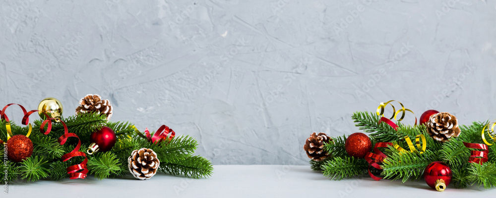 New Year Christmas tree toy, branches of a christmas tree, New Year decorations on a colored background