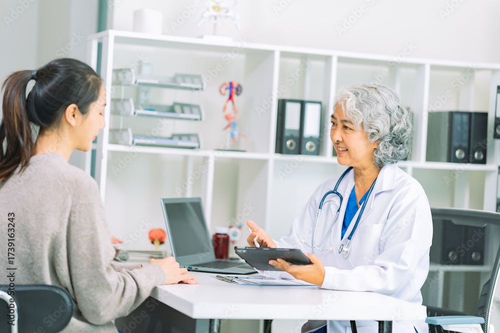 Doctor and patient discussing various matters while sitting at a table. Medical and healthcare concept. Doctor and patient.