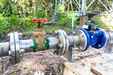 Steel water valves, blue gate valves and steel pipes in water supply systems for water supply and utility management