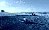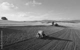 An aerial photograph of a tractor plowing a field in the picturesque countryside.