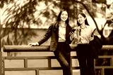 Young businesswomen discussing ideas outdoors using smartphone