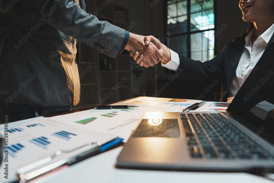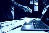 Business people shaking hands sealing new partnership agreement
