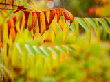 Götterbaum mit bunten Blättern im Herbst