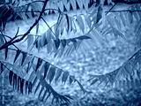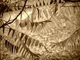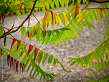 Götterbaum mit bunten Blättern im Herbst