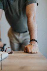 A close-up view of a bank adviser emphasizing a point during a consultation with a young couple, focusing on professional guidance and financial discussions in a formal office setting.