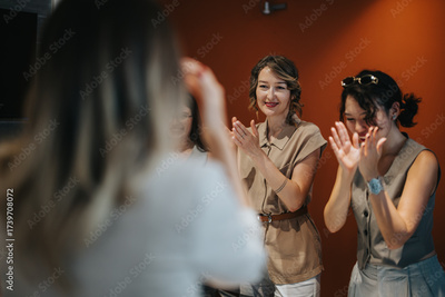 A group of women enjoying a positive and engaging moment, showcasing appreciation and camaraderie. The scene suggests a collaborative environment where support and encouragement are valued.