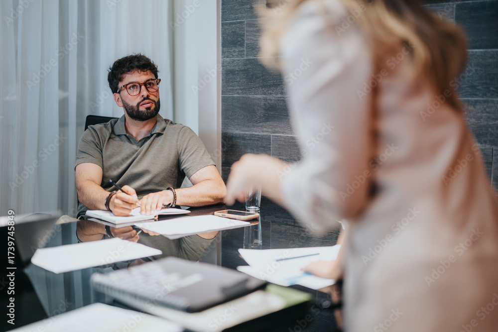 Colleagues collaborate in a modern office, working on strategy development and idea sharing, fostering productivity.