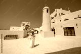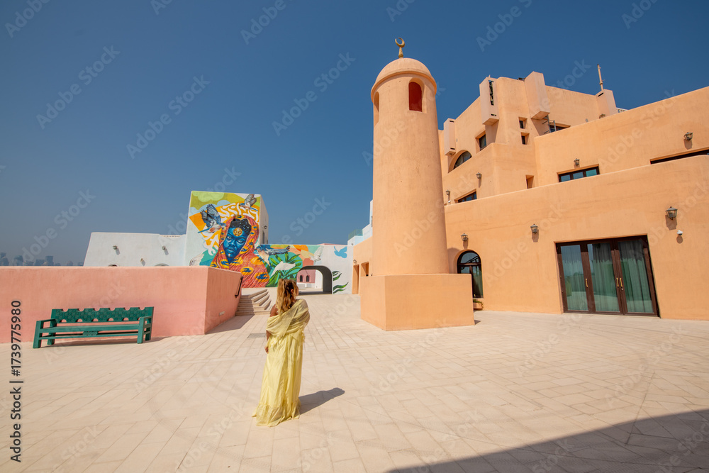 Colorful shopping villa's at old port mina park Qatar with selective focus.