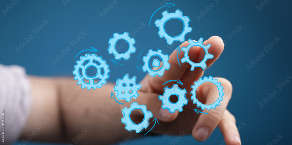 Abstract image of hand and gears. Perfect for teamwork, synergy, and process concepts.