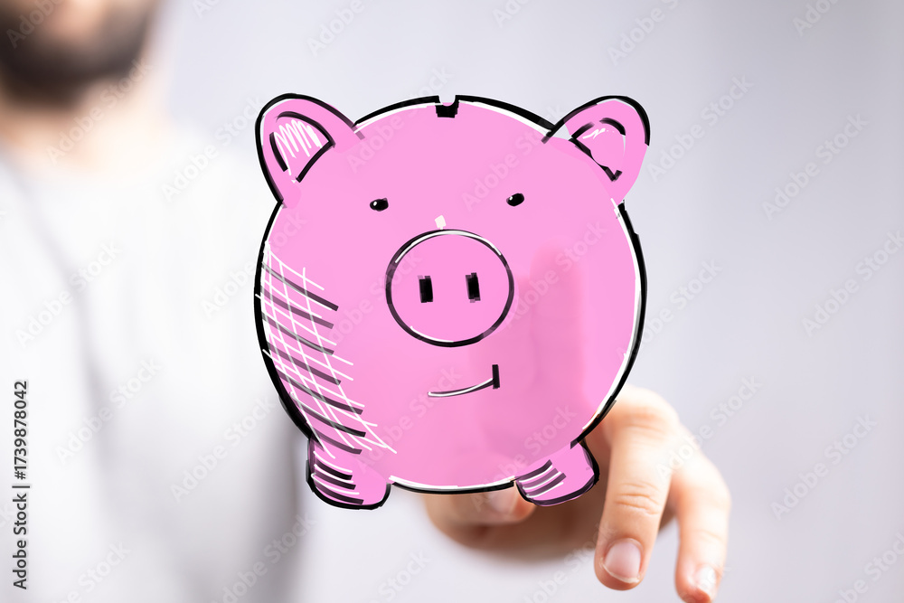 Hand holding digital piggy bank. Savings, finance, budget, money, wealth concept. Ideal for financial websites and blogs.
