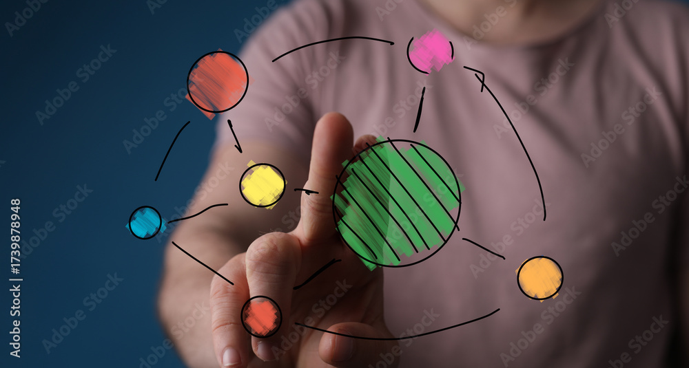 Person touching a vibrant network visualization,concept of connection, growth, and strategy.