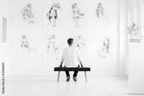 Man relaxing in art gallery