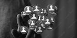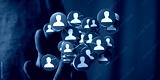 Conceptual shot of a hand holding icons representing social network and connection in the digital world.