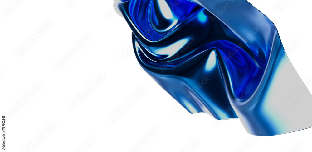 Abstract image of flowing blue fabric on a white background. Great for backgrounds, presentations, modern designs, and digital art.