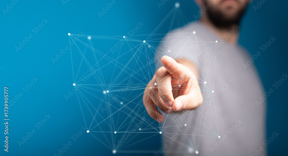 Abstract image of a hand interacting with a digital network. Perfect for tech, innovation, and connection concepts.
