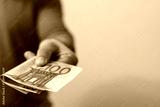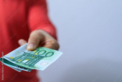 A person's hand holding out Euro banknotes, illustrating concepts of finance, money, payment, business and transactions.