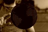 Close-up of a man's hands gesturing, wearing a simple grey t-shirt. Perfect for technology, communication, or presentation concepts.