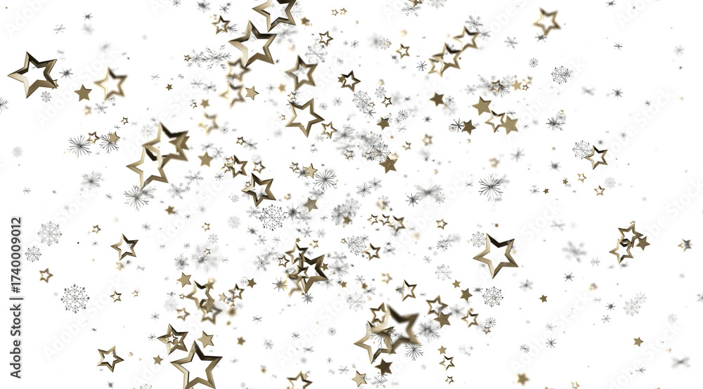 Elegant winter background with gold stars and snowflakes. Perfect for holidays, celebrations, and winter themes.