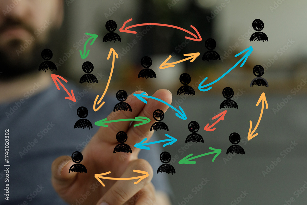 Close up of a man's hand showing two fingers, peace sign gesture. Blurred background.