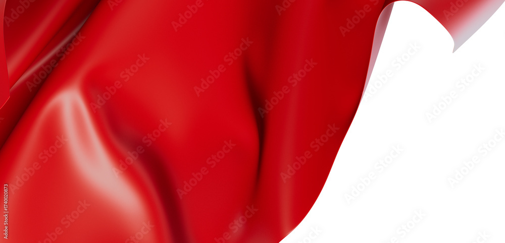 A close-up of a glossy red fabric draped and folded against a white background. The textures and highlights create a dynamic and visually appeal