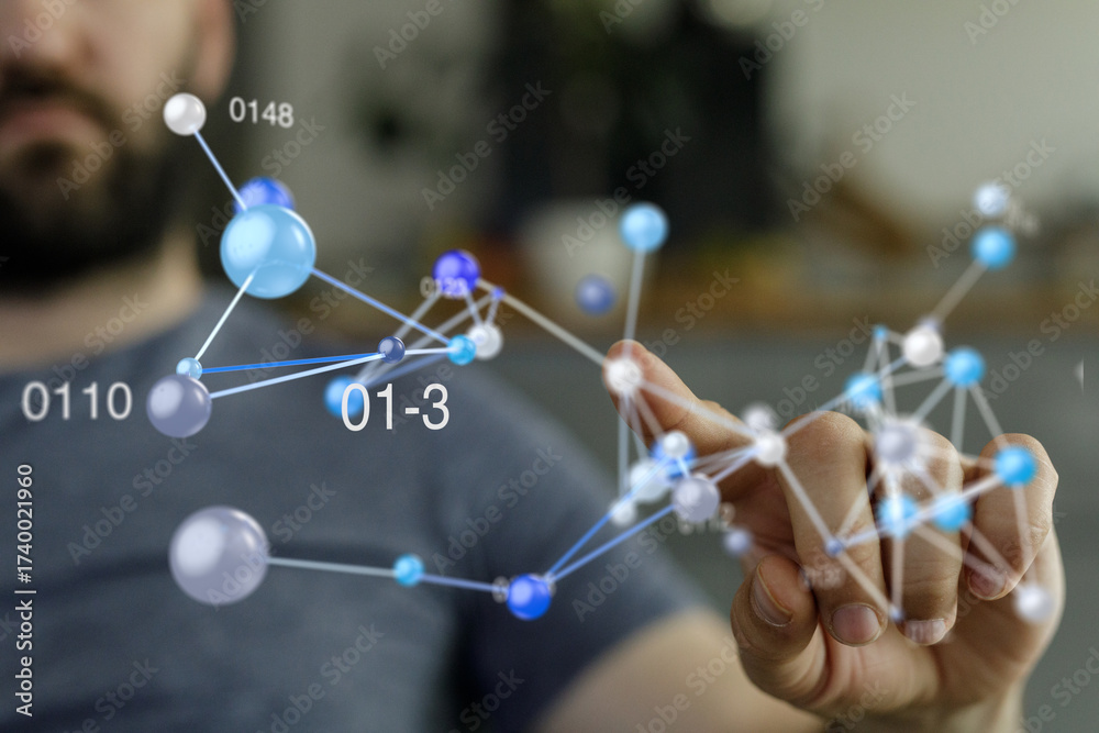 Close-up of a man's hand pointing at a screen. Perfect for technology, interaction, and digital concepts.