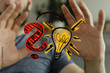 Image depicting a person seeking solutions, a question mark transforming into a lightbulb idea.