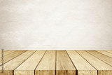 Empty perspective wood and brown cement wall background, room, table top, shelf for product display montage background, mock up, vintage style