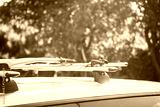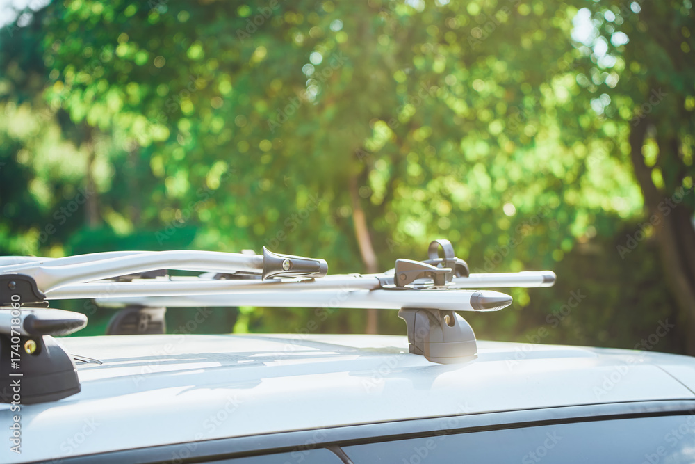 Bike rack on car roof ready for a journey in autumn sunset