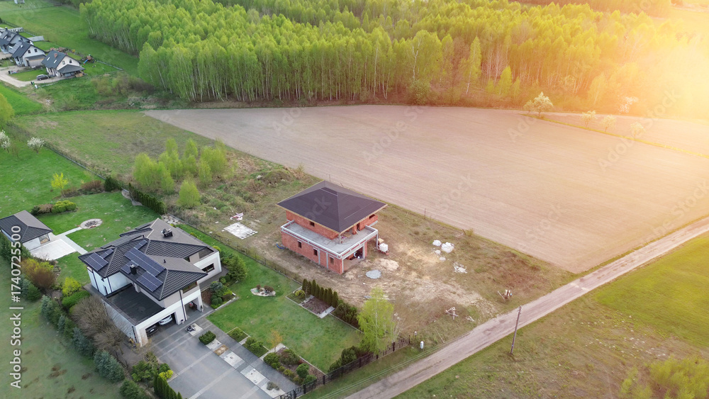 Rural landscape with detached house in progress