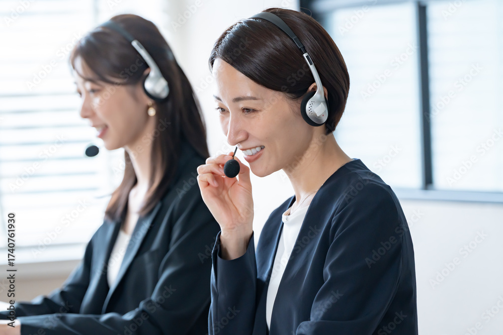 ヘッドセットを着けたオペレーターが電話対応する様子