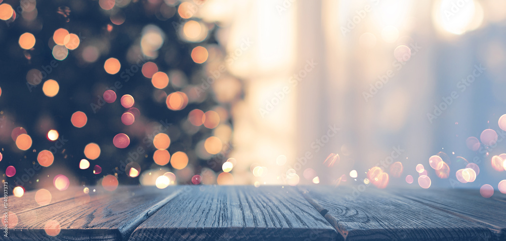 Christmas Background with Fir Tree and Illumination Lights