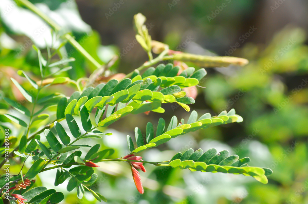 Tamarindus indica L, Indian date or Tamarind or FABACEAE or Tamarind tree and Tamarind leaf