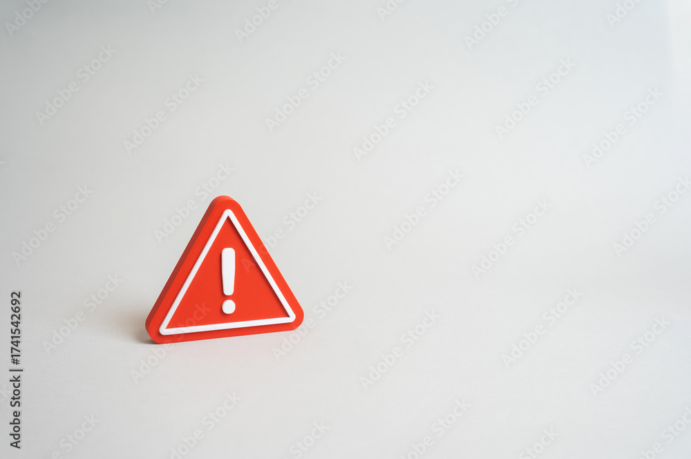 Red danger and warning sign. Caution. Technological accident. Breaking news. Important message. Emergency. Safety, risk management, workplace security.