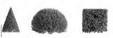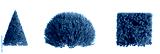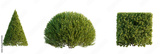 Buxus sinica tree cutout, front view, transparent background, isolate, Verdant garden shrubs in cone, sphere, and cube topiary shapes