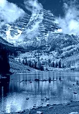 Canada geese in Colorado's Maroon Lake near Aspen, with Maroon Bells in the background
