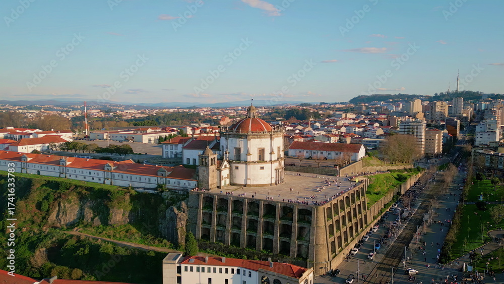 Aerial Portugal Monastery Serra Do Pilar in beautiful historical city district.