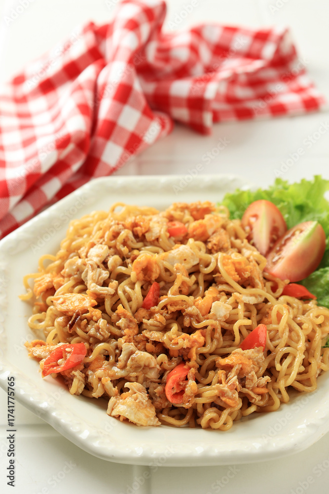 Spicy Fried Noodles Indomie Goreng Pedas with Chili