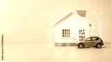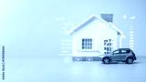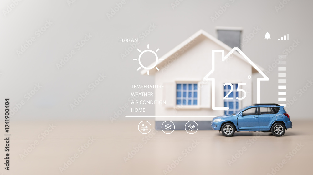 Mini house and car with a glowing 25°C interface show a smart home powered by IoT—remote thermostat control, weather insights, and energy-saving automation that delivers comfortable, efficient living.