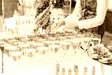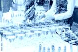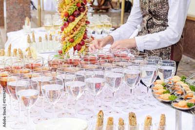 Outdoor Beautifully decorated catering banquet table with different food snacks and appetizers on corporate party event or wedding celebration. Service concept. Selective focus. Close up