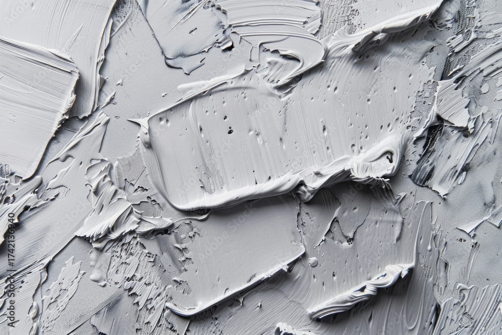 Photo of Many rough grey smears of acrylic oil paint on flat surface. Background texture for backdrops or mapping