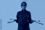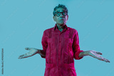 Senior man with red shirt posing in studio.