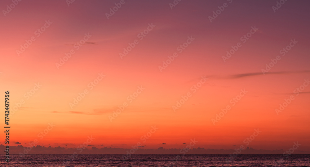 Sunset Sky Clouds over Sea on Twilight, Dark Red orange purple dramatic gold sunrise Background, Horizon landscape colorful light sun dawn in golden hour clouid beach ocean, Dusk sky evening