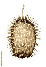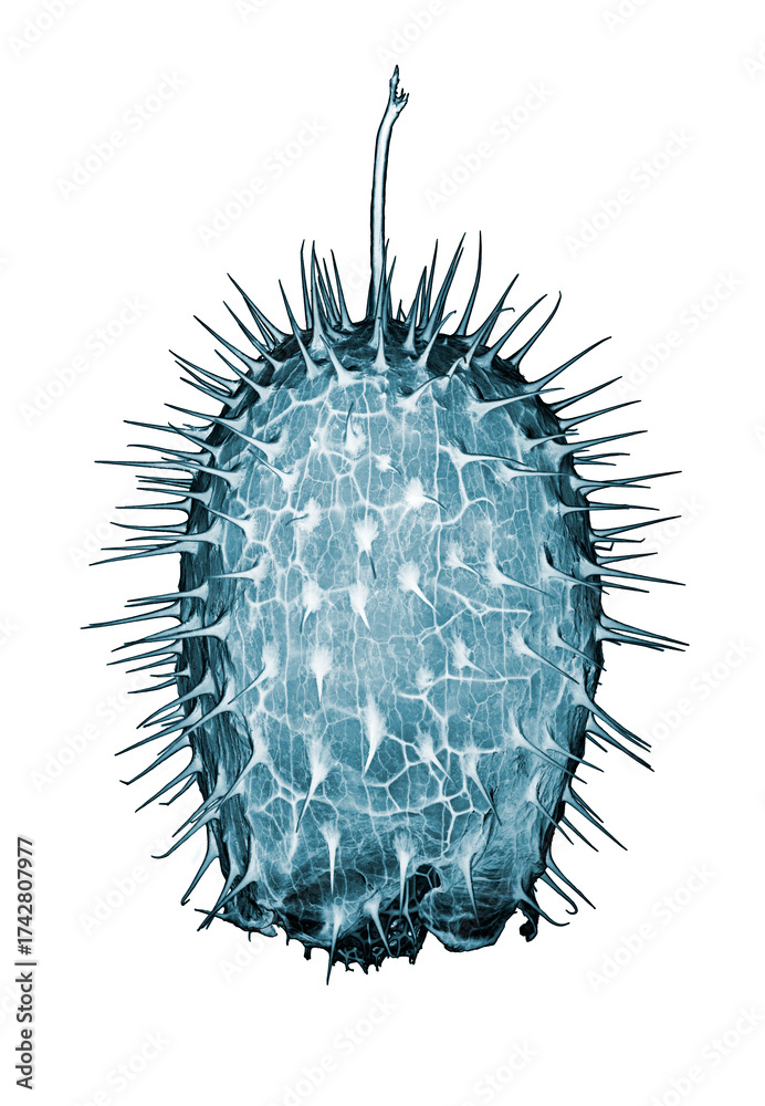 Dried fruit of Echinocystis lobata, prickly and weird; monochrome inverted image