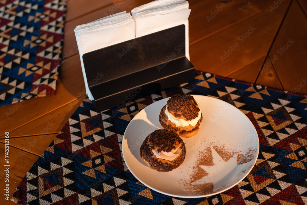 Chocolate Cream Puffs on Artistic Plate