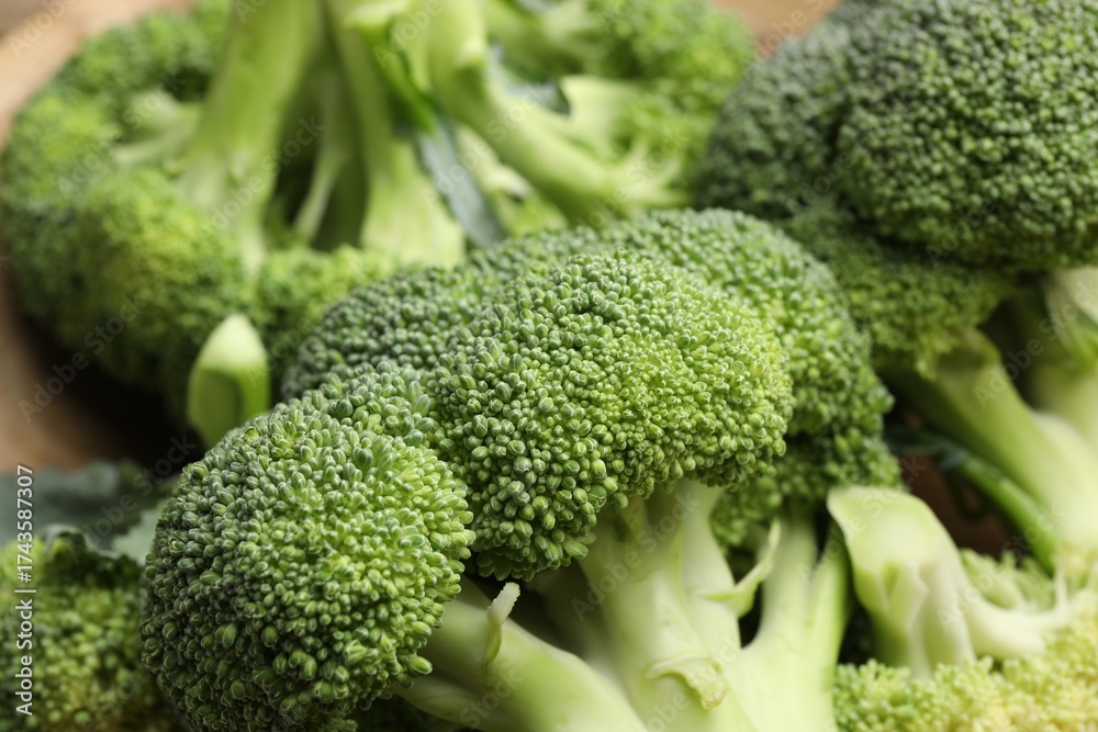 Fresh raw green broccoli in bowl, closeup