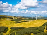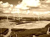 Wind Farm from a drone, Roxburghshire, Roxburgh, Southern Uplands, Scotland, UK