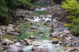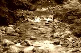 Water stream over stones. Mountain river close up