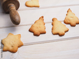 Homemade cookies with a rolling pin on a rustic wooden kitchen table