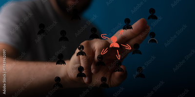 Hand interacting with network icons. Ideal for marketing, social media, and networking concepts.
