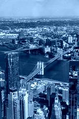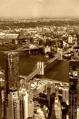 Aerial View of Brooklyn Bridge and Manhattan Skyline
